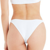 This cheeky 90's style bikini bottom features shirring at center back to help it perfectly hug your booty. Flattering on all shapes and sizes.