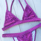 A mix between the Clavin and the Ace, this bikini top features thin shoulder straps that cross in the back and a thicker band that goes under the bust for the perfect fit! Minimal coverage makes this top great for tanning.