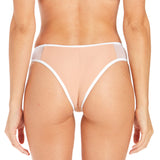 The perfect mesh paneled cheeky brief has arrived! The Milo bikini bottom features thin binding, mesh inlay at the hip and shirring on the butt to accentuate your curves in all the right places.