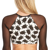 Meet the Rocky top... this sporty crop features mesh long sleeves and fits to perfection. Works well with any bottom style and can also be worn as an everyday crop top. Extremely supportive, works well for all sizes.