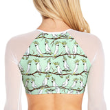 Meet the Rocky top... this sporty crop features mesh long sleeves and fits to perfection. Works well with any bottom style and can also be worn as an everyday crop top. Extremely supportive, works well for all sizes.